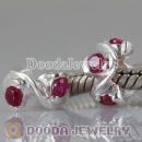 925 Sterling Silver European Style Charm Beads with Red Stone