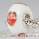 Printed Red Heart Murano Glass Beads 925 Sterling Silver European Compatible