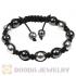 Black Skull Head Inspired String Bracelets with Pave Czech Crystal and Hemitite