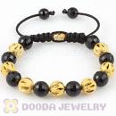 handmade Inspired Bracelet with hollow gold plated copper and Black Faceted ABS plastic beads