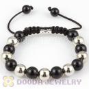 handmade Inspired Bracelet Wholesale with hollow silver plated copper and Black Faceted ABS plastic