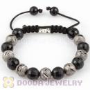 handmade Inspired Bracelet Wholesale with hollow silver plated copper and Black Faceted ABS plastic