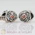 925 Sterling Silver Blooming Rose charm beads with pink CZ stones