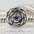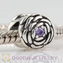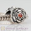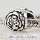 925 Sterling Silver Blooming Rose charm beads with pink CZ stones