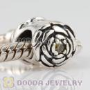 925 Sterling Silver Blooming Rose charm beads with olive CZ stones