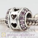 925 Sterling Silver Tunnel of Love charm beads with violet CZ stones