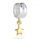 925 Sterling Silver European Style Beads Dangle Gold Plated Lucky Star