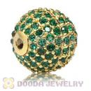 12mm Gold plated Sterling Silver Disco Ball Bead Pave Green Austrian Crystal handmade Style