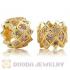 Gold plated Sterling Silver Grid charm Beads with Clear stones
