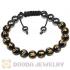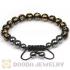 Black Skull Head Inspired Mens String Bracelets with Pave Czech Crystal and Hemitite