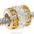 925 Sterling Silver Charm Jewelry Beads Gold Plated annulus with White Stone