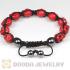 Sterling Silver Red Disco Ball Bead Men Macrame Bracelet With Black Onyx Hemitite