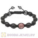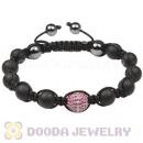 Sterling Silver Pink Disco Ball Bead Men Macrame Bracelet With Black Onyx Hemitite