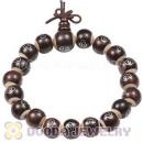 12mm Gold-Rimmed Wood Beads With Stick Bone Buddhist Prayer Bracelet Wrist Mala