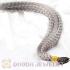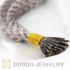 Step 2:Wrap the wire tool around the strand of hair. Take the two ends of the wire and thread them through the crimp bead. Pull the hair through the bead with the wire ends.