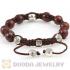 8mm Sterling Silver Skull Bead Macrame Bracelet With Pave Crystal Bead