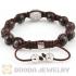 8mm Sterling Silver Skull Bead Macrame Bracelet With Pave Crystal Bead