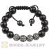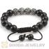 8mm Sterling Silver Skull Bead Macrame Bracelet With Pave Crystal Bead