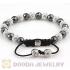 8mm Sterling Silver Skull Bead Macrame Bracelet With Pave Crystal Bead
