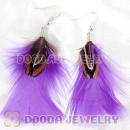 Natural Purple And Grizzly Rooster Feather Earrings With Alloy Fishhook Wholesale