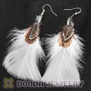 Natural Snow White And Grizzly Rooster Feather Earrings With Alloy Fishhook Wholesale