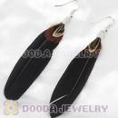 Natural Black And Grizzly Rooster Feather Earrings With Alloy Fishhook Wholesale