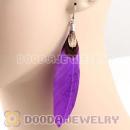 Natural Purple And Grizzly Rooster Feather Earrings With Alloy Fishhook Wholesale