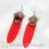 Wholesale Fashion Red And Grizzly Feather Earrings With Alloy Fishhook1. Feature:Feather earrings can be made from bird feathers like a peacock, ostrich, parakeet, etc,which are extemely the suitable jewelry to adorned with your ear,which is an obvious place on body. Feather earrings can be an important highlight point for your wearing to be impress, ear is an obvious place on body to be good adorned with.