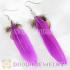 Cheap Long Purple And Grizzly Feather Earrings With Alloy Fishhook Wholesale