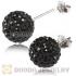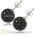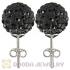 10mm Sterling Silver Black-White Czech Crystal Stud Earrings Wholesale
