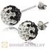 10mm Sterling Silver Black-White Czech Crystal Stud Earrings Wholesale
