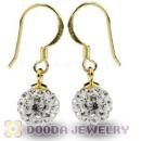 8mm White Czech Crystal Ball Gold Plated Sterling Silver Hook Earrings
