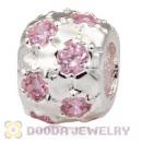 925 Sterling Silver Beads with Pink Stone fit European Lovecharmlinks Bracelet
