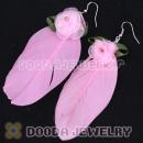 Wholesale Pink Tibetan Jaderic Bohemia Styles Silk Flower Feather Earrings