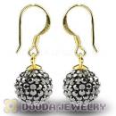 10mm Grey Czech Crystal Ball Gold Plated Sterling Silver Hook Earrings
