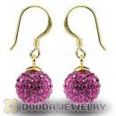 10mm Magenta Czech Crystal Ball Gold Plated Sterling Silver Hook Earrings