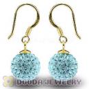 10mm Cyan Czech Crystal Ball Gold Plated Sterling Silver Hook Earrings