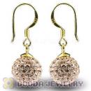 10mm Pink Czech Crystal Ball Gold Plated Sterling Silver Hook Earrings