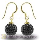 10mm Black Czech Crystal Ball Gold Plated Sterling Silver Hook Earrings