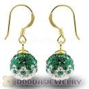 10mm Green-White Czech Crystal Ball Gold Plated Sterling Silver Hook Earrings