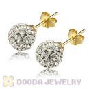 8mm White Czech Crystal Ball Gold Plated Silver Stud Earrings Wholesale