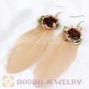 Wholesale Brown Tibetan Jaderic Bohemia Styles Silk Flower Feather Earrings