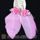 Wholesale Pink Tibetan Jaderic Bohemia Styles Silk Flower Feather Earrings