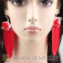 Wholesale Red Tibetan Jaderic Bohemia Styles Silk Flower Feather Earrings1. Feature:Feather earrings can be made from bird feathers like a peacock, ostrich, parakeet, etc,which are extemely the suitable jewelry to adorned with your ear,which is an obvious place on body. Feather earrings can be an important highlight point for your wearing to be impress, ear is an obvious place on body to be good adorned with.