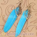 Wholesale Blue Tibetan Jaderic Indianstyles Alloy Leaf Feather Earrings