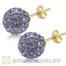 10mm Purple Czech Crystal Ball Gold Plated Silver Stud Earrings Wholesale