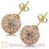 10mm White-Black Czech Crystal Ball Gold Plated Silver Stud Earrings Wholesale