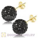 10mm Black Czech Crystal Ball Gold Plated Silver Stud Earrings Wholesale
