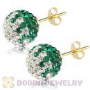 10mm White-Green Czech Crystal Ball Gold Plated Silver Stud Earrings Wholesale