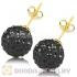 10mm White-Black Czech Crystal Ball Gold Plated Silver Stud Earrings Wholesale